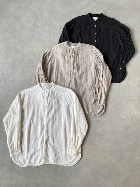 HTS (HARROW TOWN STORES)LINEN PLAIN STAND COLLAR SHIRTS |